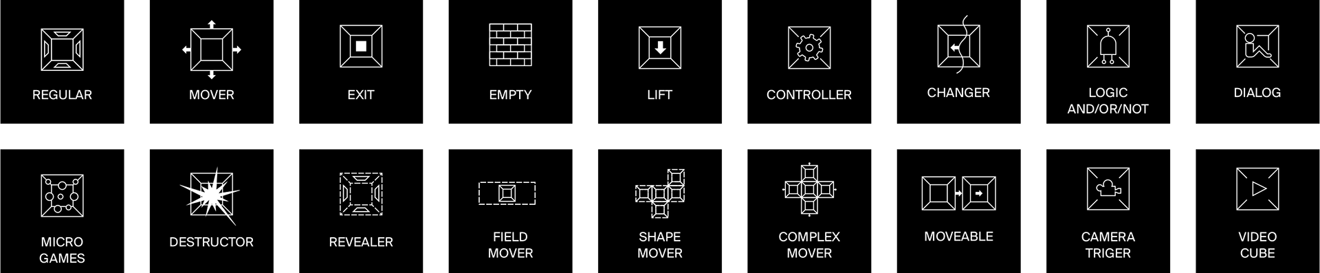 Cubature is a puzzle game in which players manipulate a modular array of cubes to guide characters to the exit. The cubes vary in functionality – some are movable, others are frozen, and still others have unique properties such as elevators, switches, and drive mechanisms. By arranging the cubes appropriately, players discover their functions and create interactions that unlock the next levels.
