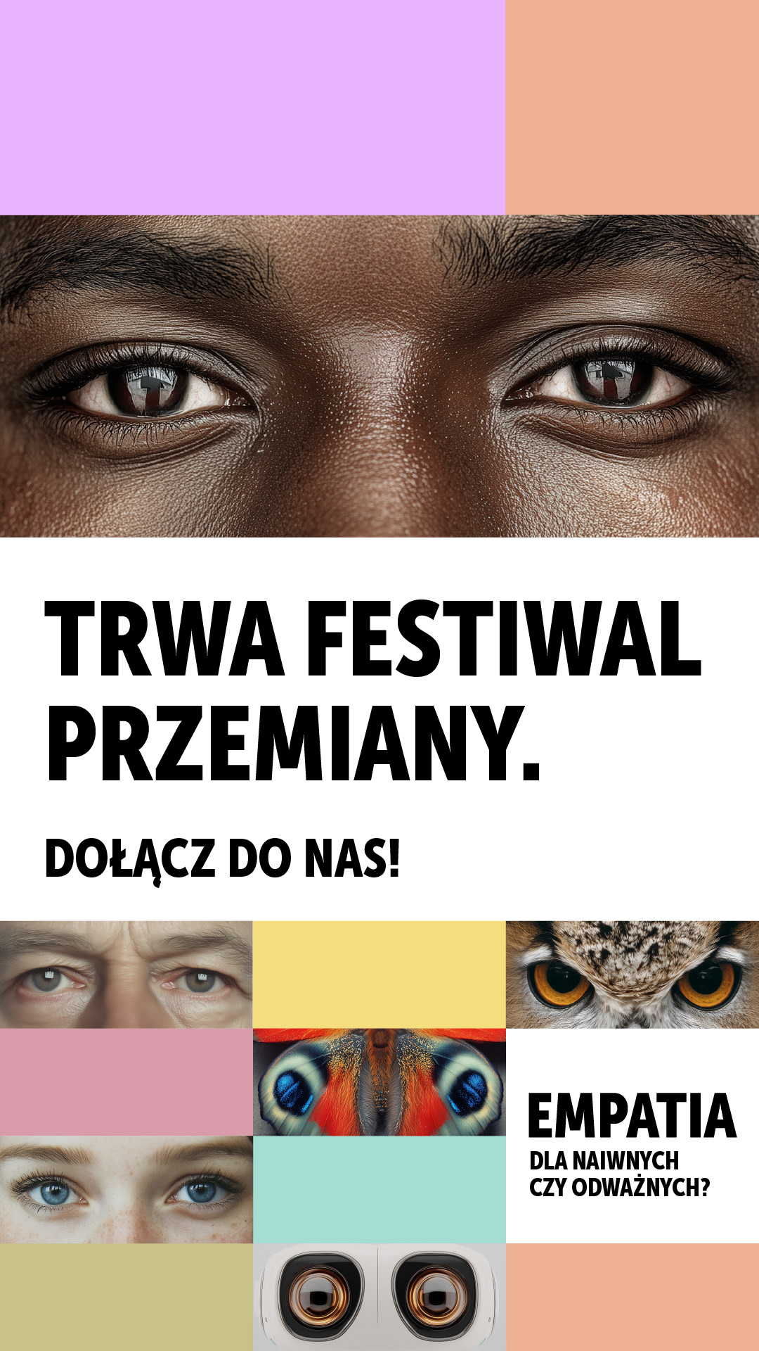 We base our communication on the gaze – a nonverbal act that opens us to understanding and empathy. We want to speak about the moment of true seeing: free from filters, judgments, and safe distance. The eyes become a natural motif in this narrative. They initiate contact, spark reflection, and build a sense of reciprocity. It is through the gaze that dialogue is activated – including the silent, deep one between different forms of existence. The motif of the eyes is also a symbolic reference to the future – the one we want to build through empathy, with understanding being the beginning of shared feeling.
